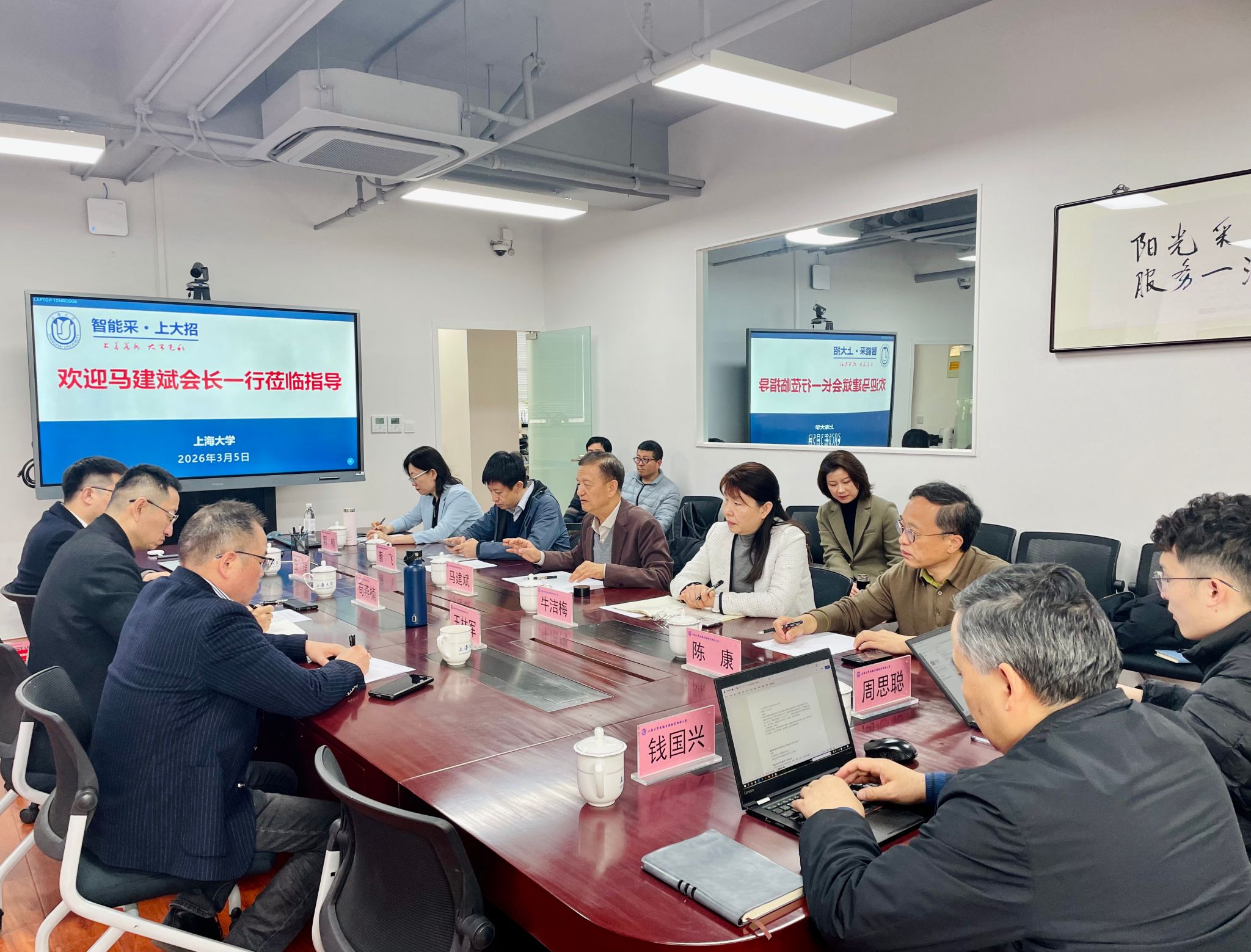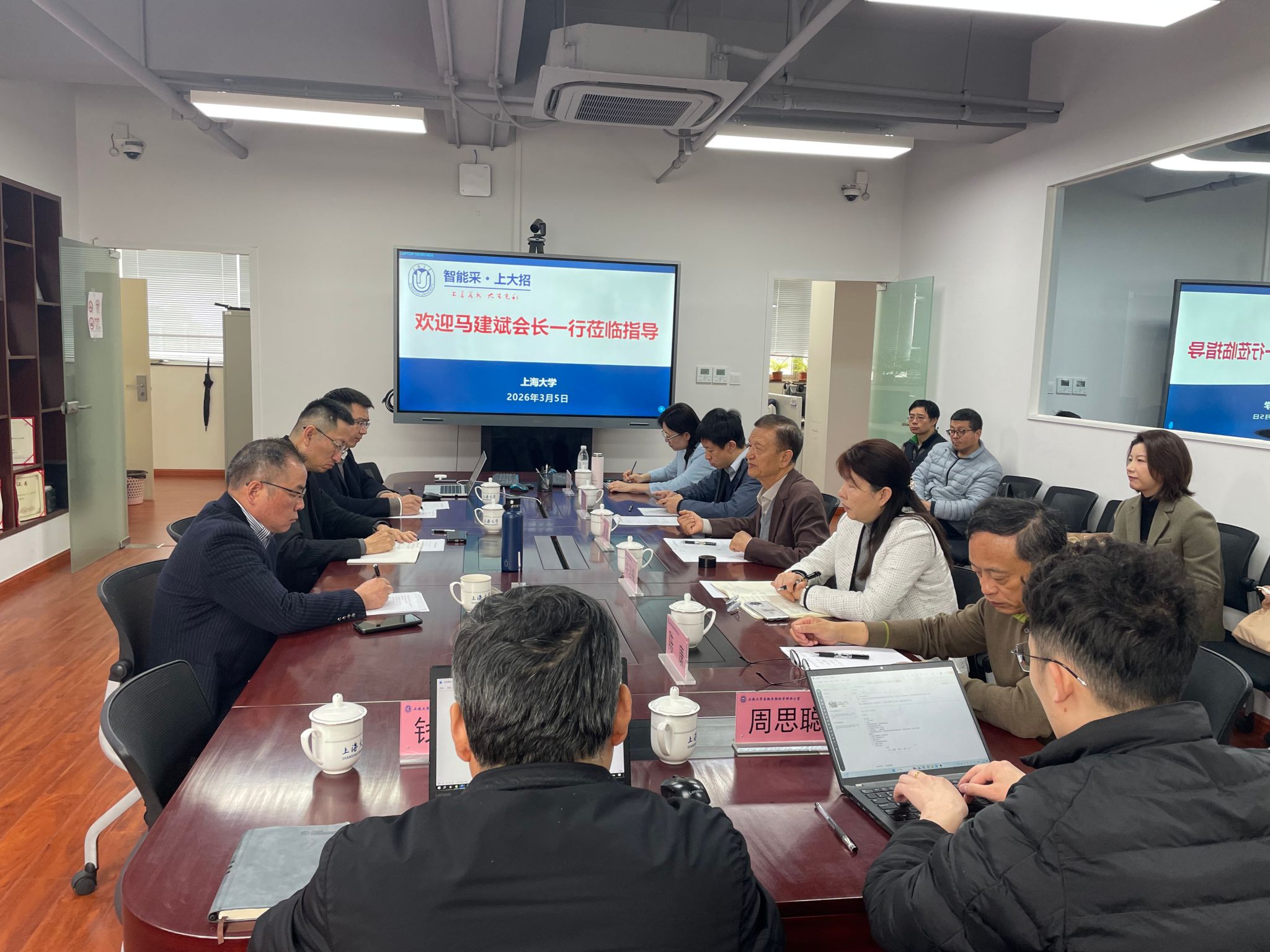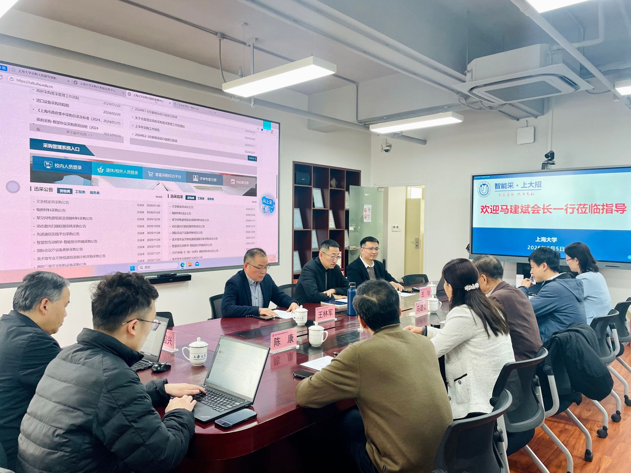 2026年3月5日,中国教育会计学会高校政府采购分会会长马建斌带队,副会长牛洁梅、唐飞,常务理事陈康、郭楠等一行莅临上海大学,就政府采购信息化建设开展专题调研。上海大学党委常委、总会计师苟燕楠,资产与实验室管理部部长、实验室与设备管理处处长王林军,采购与招标管理中心主任王瑞出席交流。